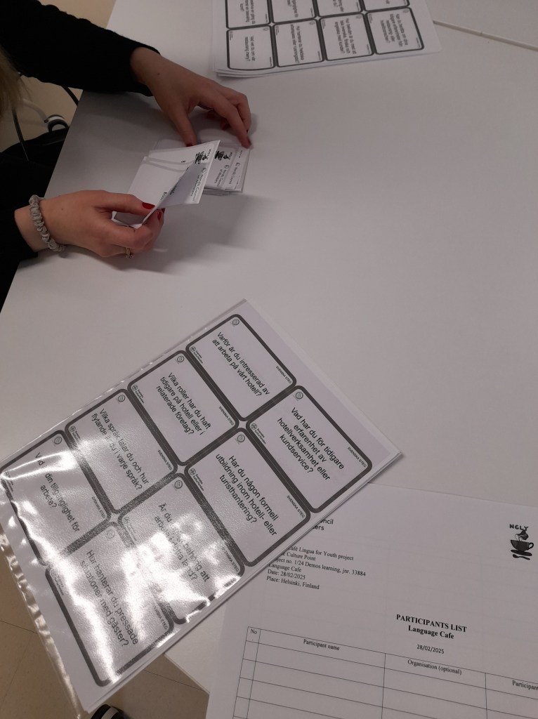 Gallery Search AboutConsortiumResultsMaterialsMediaGalleryContacts Café Lingua for Youth in Finland {“capture_mode”:”AutoModule”,”faces”:[]} {“capture_mode”:”AutoModule”,”faces”:[]} Café Lingua for Youth in Iceland Café Lingua for Youth in Sweden International Language Cafe in Kristianstad, Sweden – June 2025 Meeting in Helsinki, Finland – September 2024